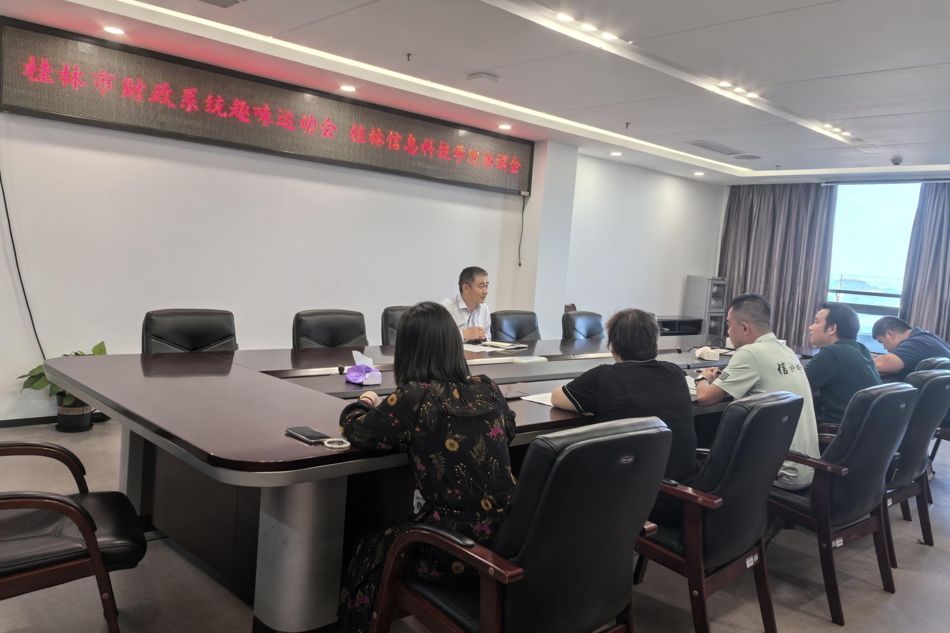 前期,桂林市财政局领导到永利官网协调赛事筹备工作,针对赛事筹备、赛事执行、宣传和安全保障工作等进行沟通交流。学校党委副书记李飞出席调研会,对本次赛事在永利官网举办表示大力支持,并做出了明确分工,保障此次赛事顺利进行。体育与健康学院、后勤服务处、保卫处和宣传部各司其职,确保为本届体育赛事提供技术支撑和各项保障服务。