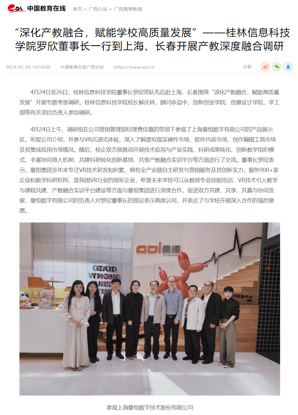 中国教育在线:“深化产教融合,赋能学校高质量发展”——永利集团304am登录罗欣董事长一行到上海、长春开展产教深度融合调研