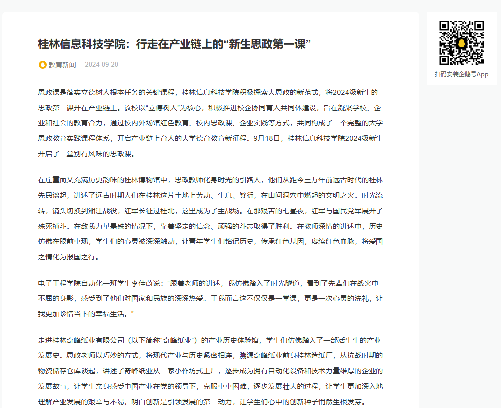 教育新闻链接:永利集团304am登录:行走在产业链上的“新生思政第一课”_腾讯内容开放平台 (qq.com)