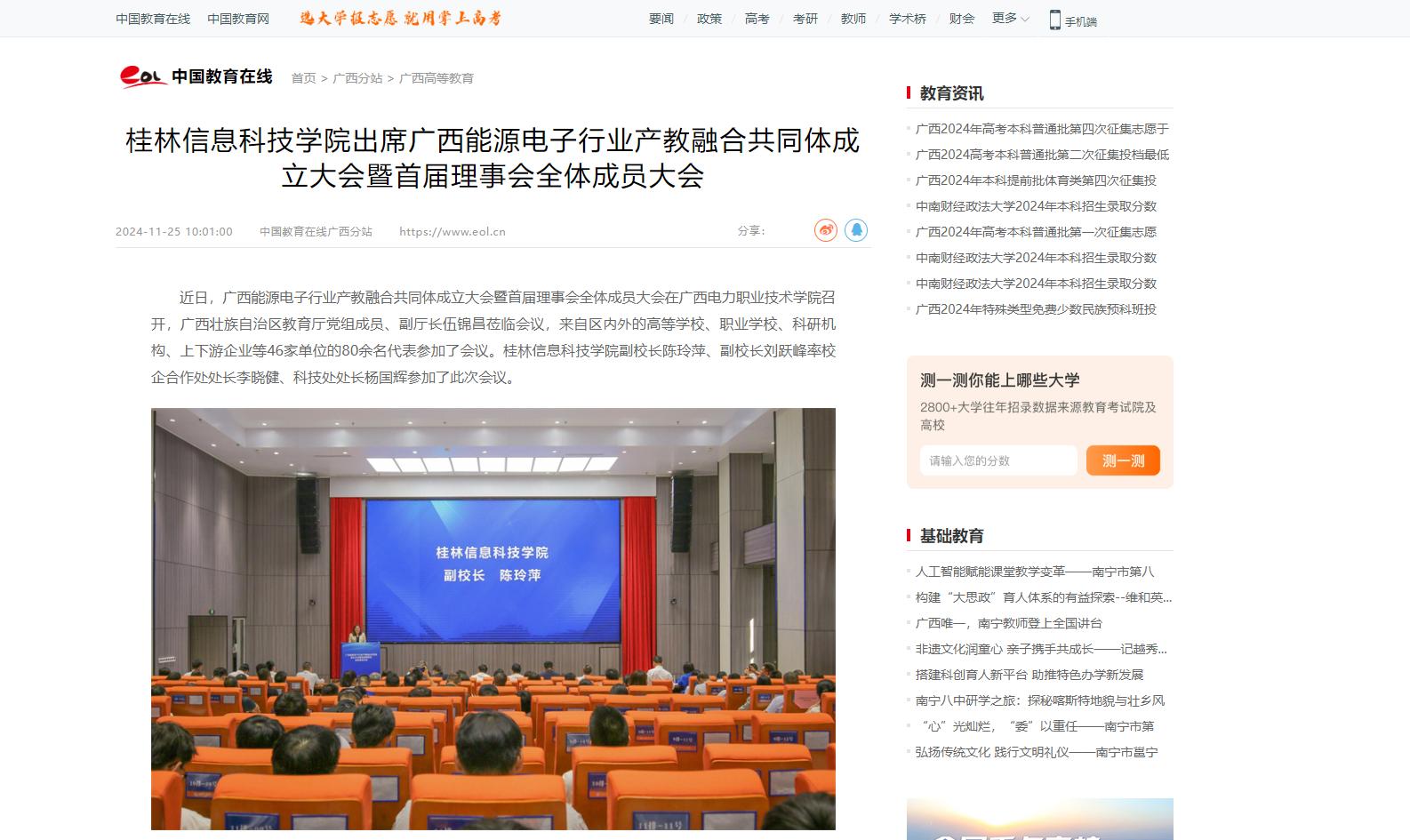 中国教育在线:永利集团304am登录出席广西能源电子行业产教融合共同体成立大会暨首届理事会全体成员大会