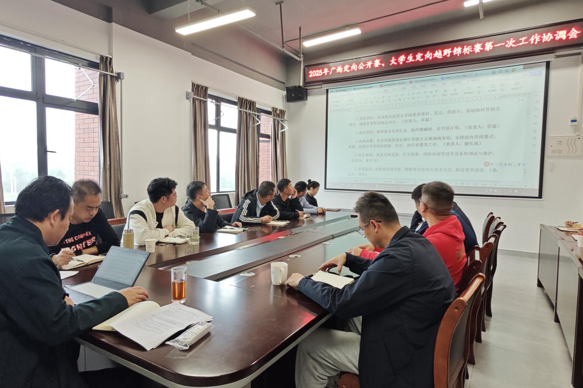 为确保2025年广西定向公开赛暨第四届广西壮族自治区大学生定向越野锦标赛顺利举办,统筹赛事各项筹备工作,11月7日上午,体育与健康学院在行健楼205会议室召开专项筹备推进工作会议。学院领导班子成员、院办和各教研室主任以及部分骨干教师参加会议,会议由学院院长周勇主持。会议现场会上,周院长首先传达了自治区教育厅、自治区体育局关于举办本次赛事的相关文件精神,强调了赛事的意义。他指出,定向运动作为兼具竞技性与...
