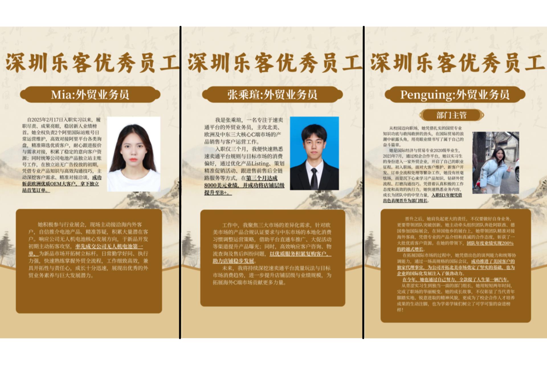 近日,外贸与外语学院在与校企合作单位深圳乐客企业咨询有限公司开展的“跨境电商订制班”联合培养工作中喜获佳讯——张乘瑄等6名学生因表现优异,被企业授予“优秀员工”荣誉称号。优秀员工事迹(一)优秀员工事迹(二)学院与深圳乐客企业咨询有限公司的合作已持续多年,形成了稳定深入的人才共育机制。在此期间,累计已有百余名学生通过该合作平台进入跨境电商及外贸行业实习与实践,实现了从校园到职场的顺畅衔接。此次多名...