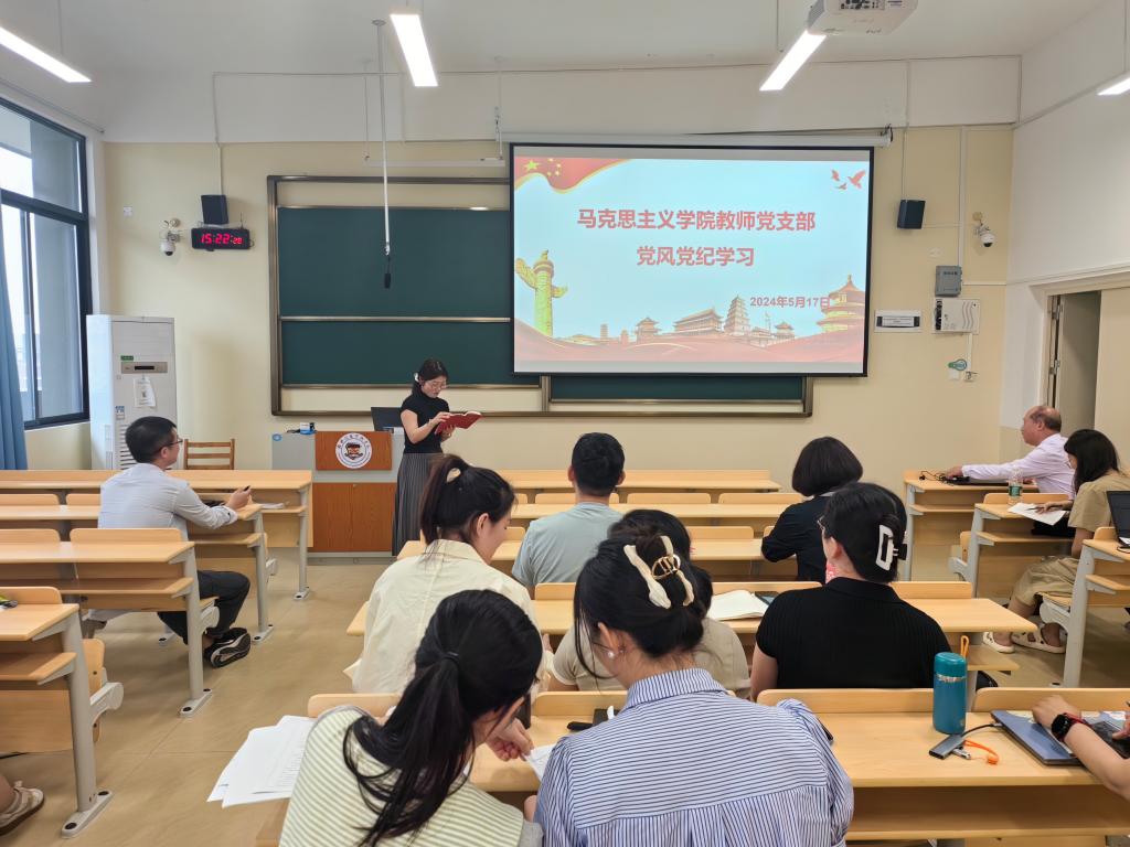 为进一步加强新形势下思政课教师队伍建设,5月19日,马克思主义学院教工党支部在C514教室召开党风党纪警示教育会议。会议由马克思主义学院教工党支部书记曹晓莉主持,马院全体党员教师参加。会上,石珂老师首先对新修订的《中国共产党纪律处分条例》要点及主要内容进行了解读和阐释。并强调教师作为教育工作者肩负着培养社会主义建设者和接班人的崇高使命,必须时刻牢记教师工作纪律,规范从教行为,以身作则;学院对违规行为“...