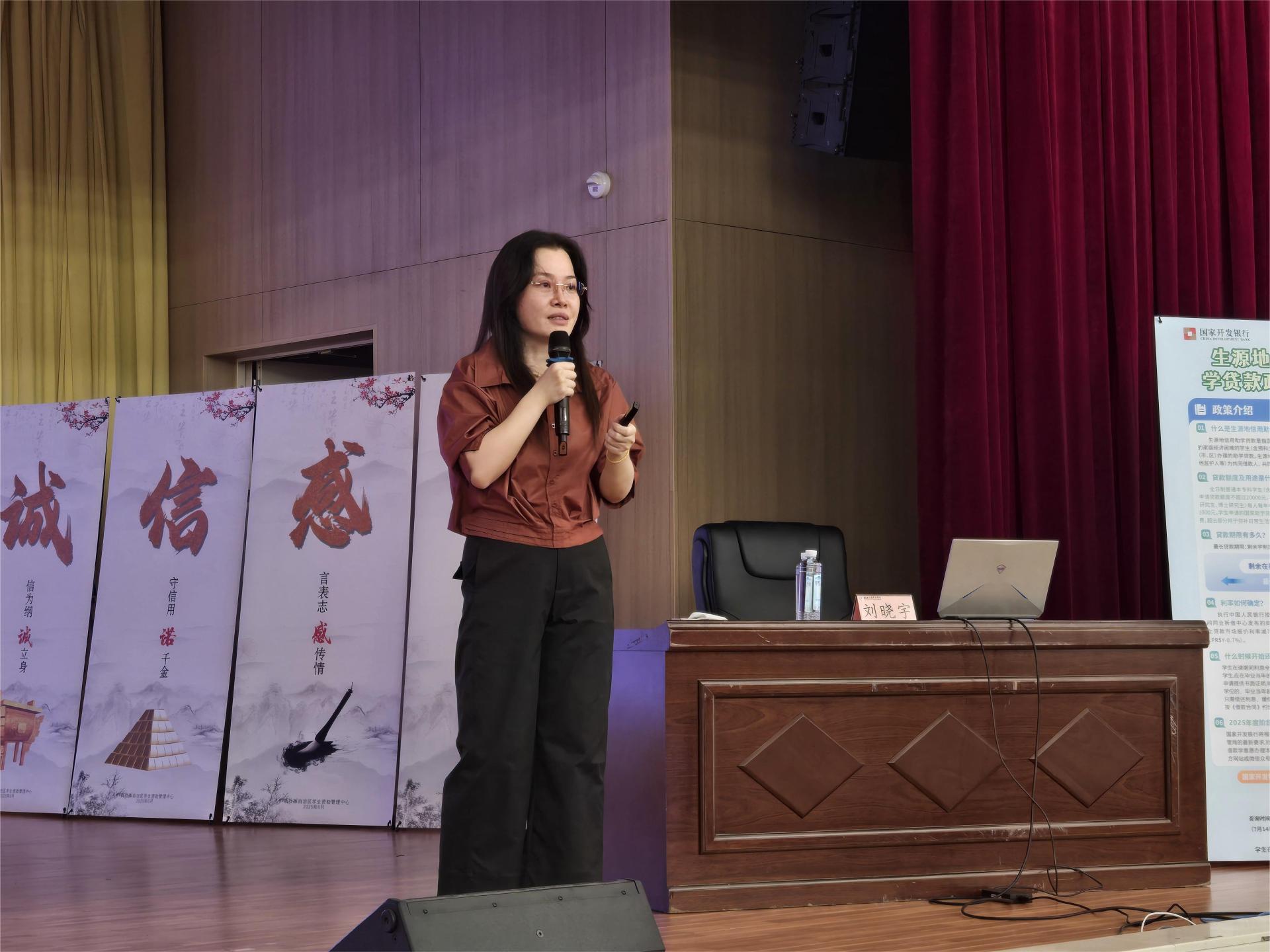 主讲人刘晓宇书记聚焦大学生群体易面临的风险领域,从四个部分进行深入剖析。一是结合高发案例,揭露常见诈骗手法,加强学生防诈意识;二是通过真实案例警示,深刻剖析了“低息”陷阱背后的“套路贷”危害;三是呼吁学生树立正确消费观,增强风险意识,理性消费;四是强调保持良好信用记录的必要性,尤其针对办理了生源地信用助学贷款的学生,提醒此类学生按时履约,避免逾期等行为损害信用。