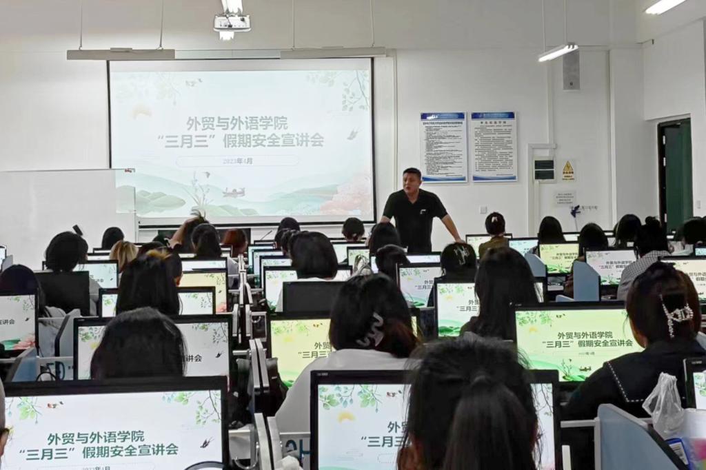 为做好广西壮族三月三假期安全主题教育工作,提高学生安全意识,4月19日,外贸与外语学院各年级辅导员开展了广西三月三假期安全主题教育。