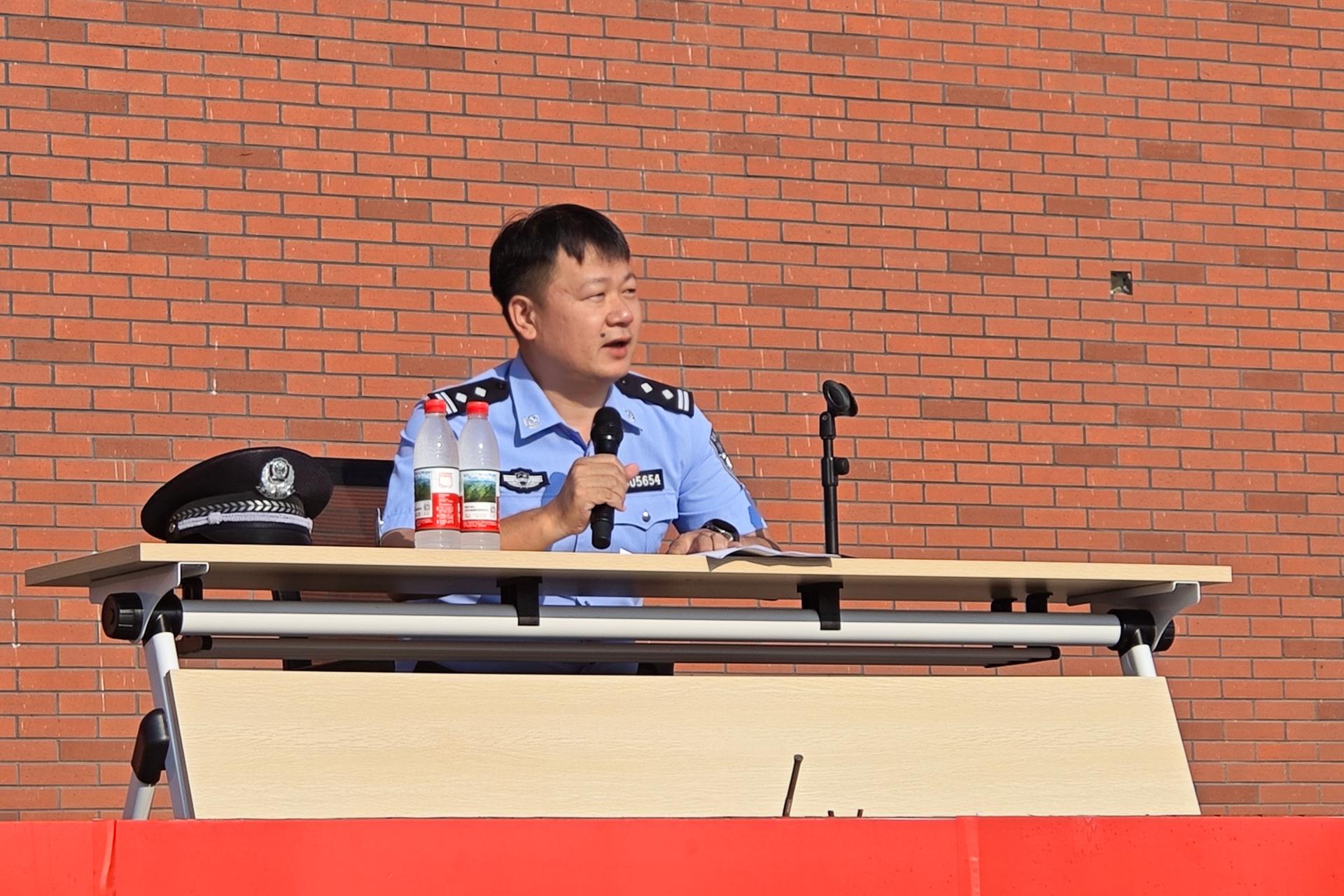 庙岭派出所所长邓明明为学生讲述提高防诈骗意识的重要性