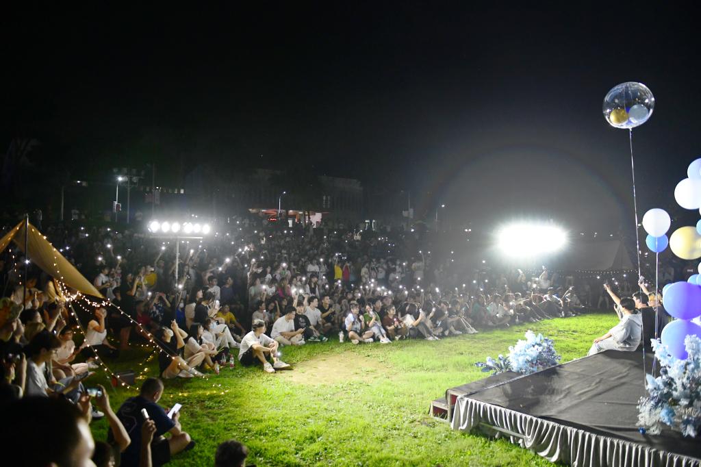 欢声笑语,吹响毕业号角;载歌载舞,镌刻离别思绪。根据学校2022届毕业生工作安排,6月8日晚,由党委学生工作部(校团委)、招生就业处、党群事务部主办的校园草地音乐节暨欢送2022届毕业生专场音乐晚会于学校足球场举行。本次晚会以“奔赴蔚来”为主题,分为“时光唱片局”、“星光留声馆”、“追光筑梦人”三个篇章。