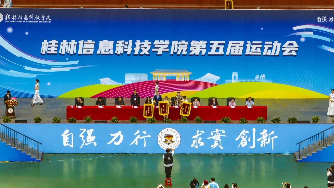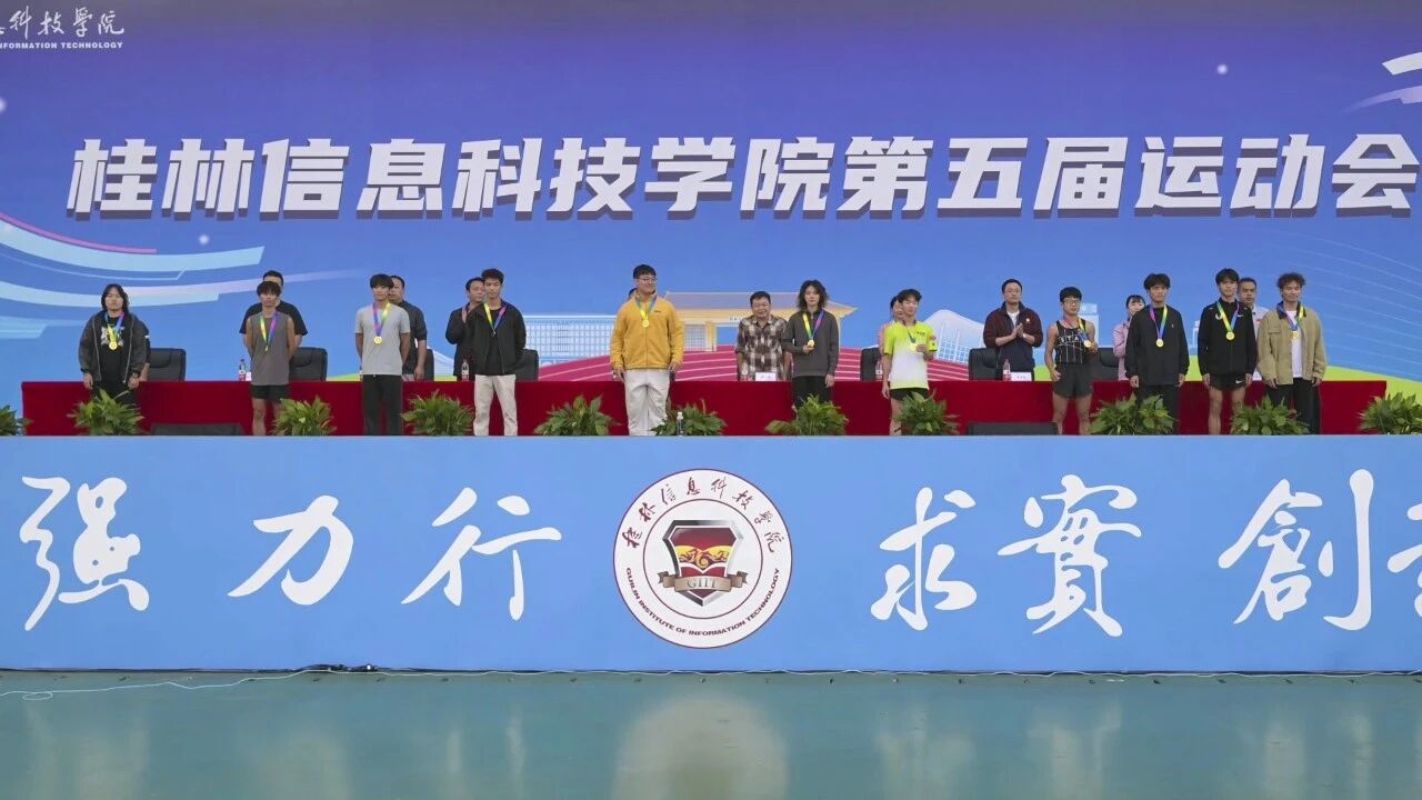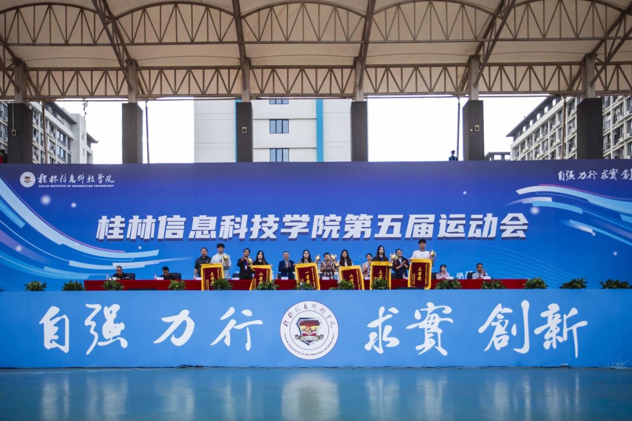 闭幕式上,运动会总裁判长周勇宣布了第五届运动会各项比赛成绩,主席台领导分别为获奖团队和个人进行颁奖。