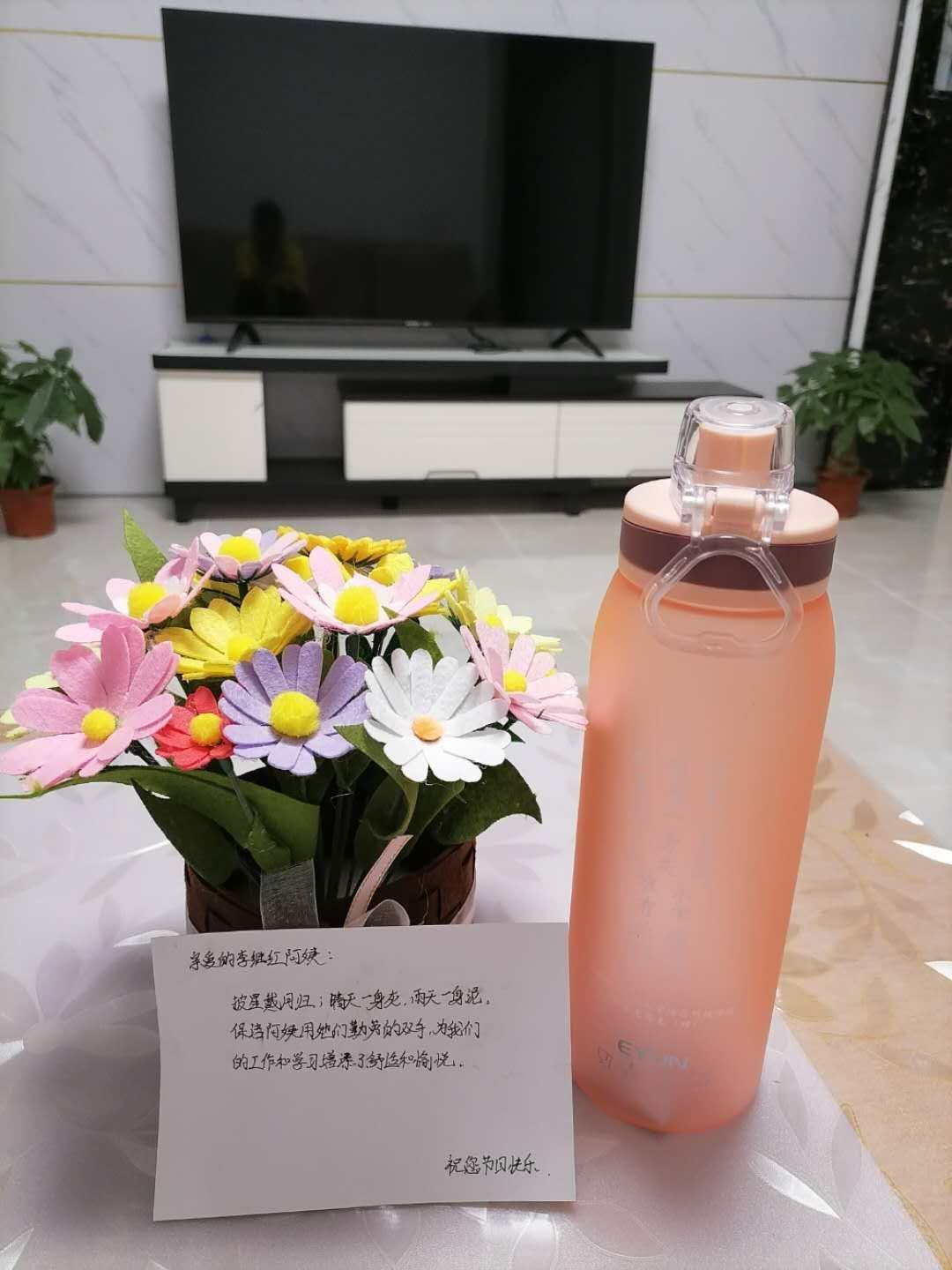 主题活动中,首先以观看视频的形式让全体同学了解到学院负责一线清扫的叔叔阿姨日常工作的不容易,同时同学们通过演唱《感恩的心》、赠送手工制作的节日卡片、手工花以及水杯的方式表达了对叔叔阿姨们的感谢与敬佩,并以集体宣誓的形式,对我们的同学们发起《争做爱护校园环境小先锋》的倡议,管理系所有的学生志愿者集体宣誓,大家都表示在以后的学习生活终将会秉持着爱护环境的原则为人处事,以身作则,用自己的力量感染周围所有的同学。最后,学院院长助理、物业公司总经理兼物业直属党支部书记宋海军老师发言,宋老师就目前学院对于垃圾分类工作所做的准备向大家进行了详细介绍,倡导大家加入到垃圾分类的队伍中来,并鼓励阿姨们继续做好“校园美容师”的工作。同时,学院财务总监朱霞老师对此次活动也进行了总结,朱霞老师对辛苦的环卫工人们进行了慰问,希望在校园美化工作中有更多的学生志愿者加入,相信在我们校园志愿者和“校园美容师”的共同努力下,我们的校园美化的工作将会继续开展的有声有色。
