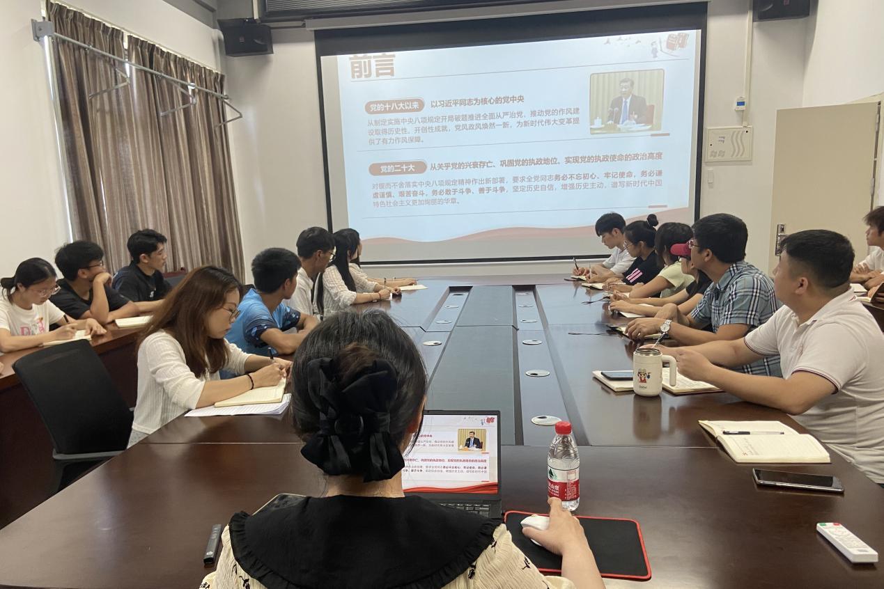 为深入贯彻中央八项规定精神学习教育,进一步加强党员干部作风建设,6月6日,体育与健康学院学生党支部在行健楼205会议室开展深入贯彻中央八项规定精神学习教育专题辅导授课。本次活动主讲人是马克思主义学院的廖丽老师。