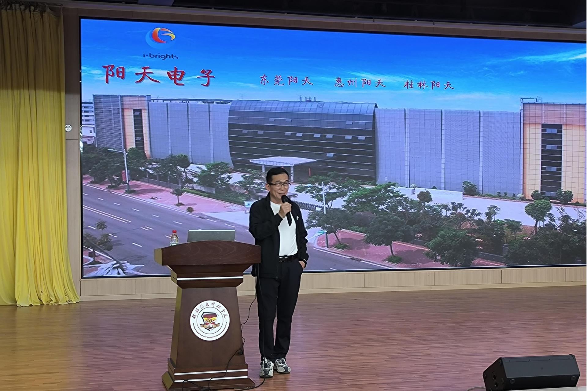 为深化产教融合,拓宽学生就业渠道,3月27日,机电工程学院与中航(东莞)阳天电子科技有限公司联合举办校企联合培养暨毕业生招聘宣讲会。学院党委书记文超、企业总经理助理崔世新出席活动,吸引机电工程学院2021级、2022级学生及辅导员等400余人参与。