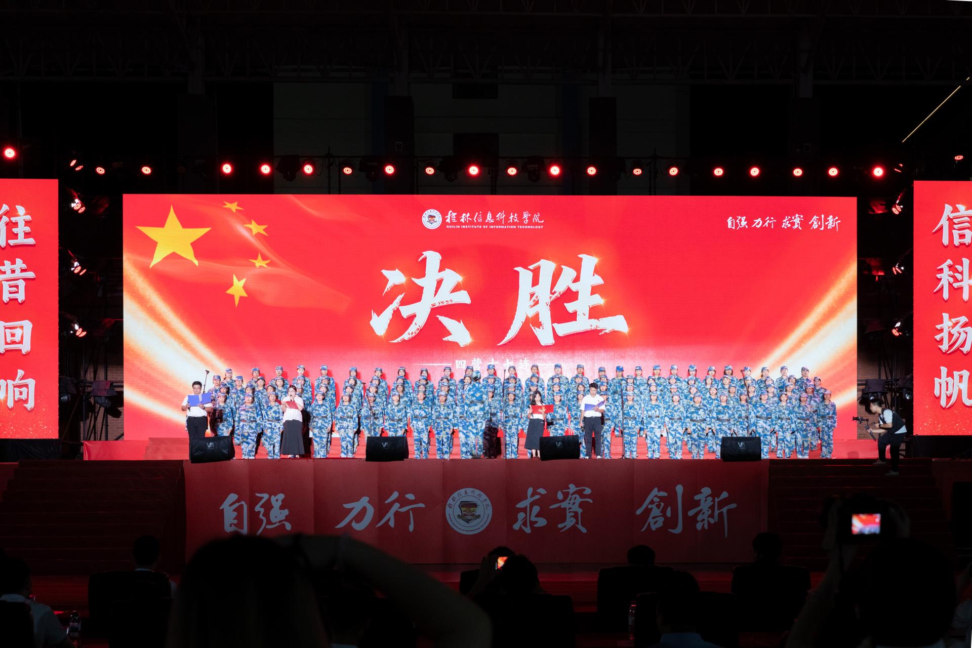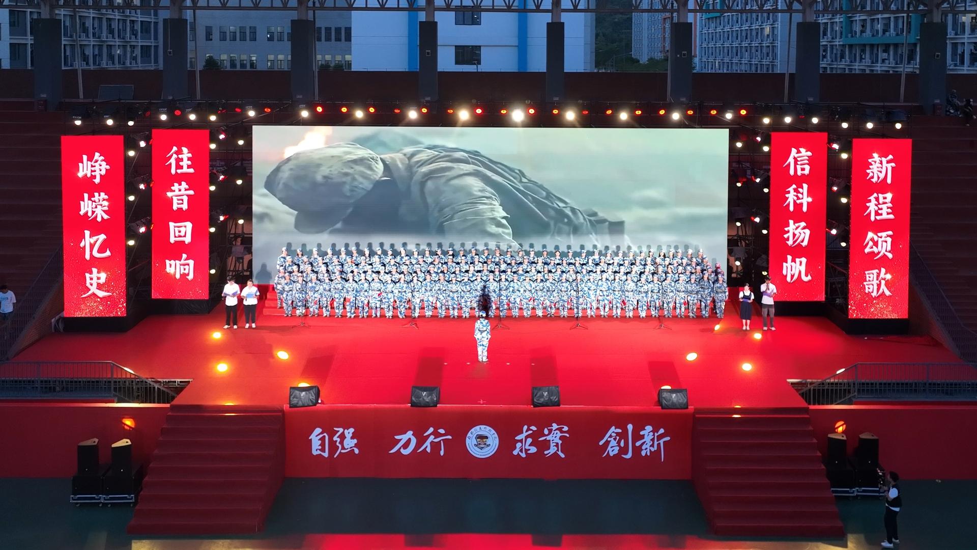 为纪念中国人民抗日战争暨世界反法西斯战争胜利80周年,传承红色基因,厚植家国情怀,推进校园文化“七个一”工程建设,9月11日晚,学校在田径场举办了一场以“青春逐浪忆峥嵘,信科扬帆启新程”为主题的新生红歌比赛。学校董事长罗欣,校长解庆林,纪委书记、校长助理周璇出席活动,相关职能部门、各二级学院党组织及团组织负责人和学生代表4000余人参加活动。