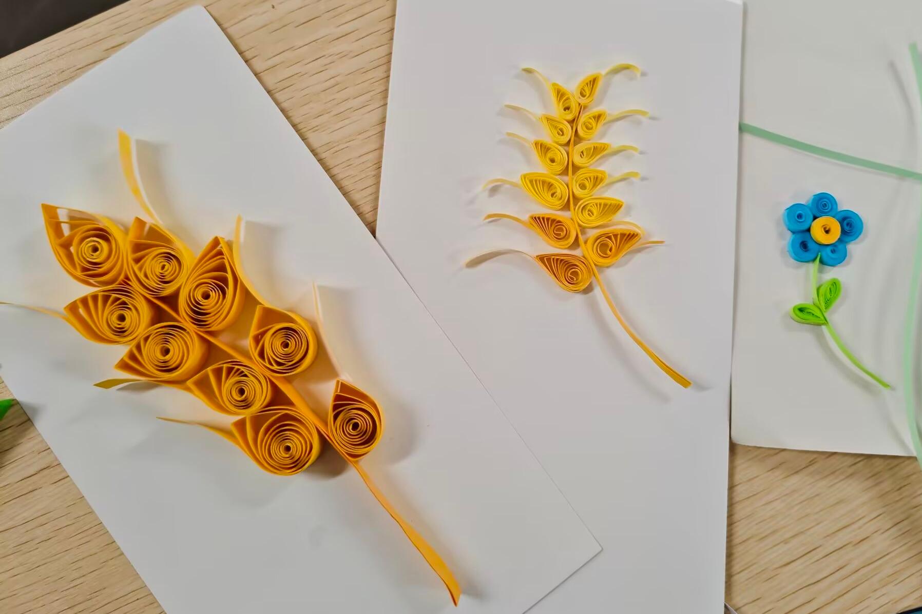 活动伊始,织围巾体验率先拉开序幕。对于起针、收针等基础操作,同学们围坐交流、互相指导,手把手纠正手法。从生疏摸索到逐渐熟练,指尖在毛线与织针间慢慢穿梭,各色围巾雏形渐显。在衍纸创作环节,同学们将彩色衍纸条卷曲、折叠、粘贴,大胆尝试各类造型,把日常风景、个性图案等灵感融入作品,陆续完成装饰画、书签等精致成果。创作过程中,大家不时交流操作小窍门,互相借鉴创意,在轻松互动中碰撞出灵感火花。