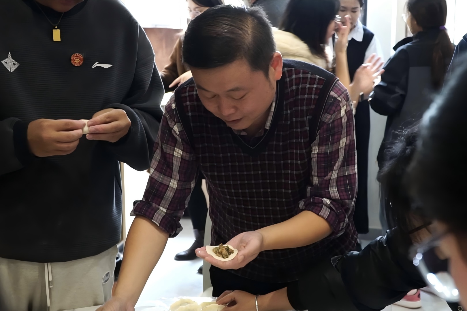纪委书记、校长助理周璇与师生共同包饺子