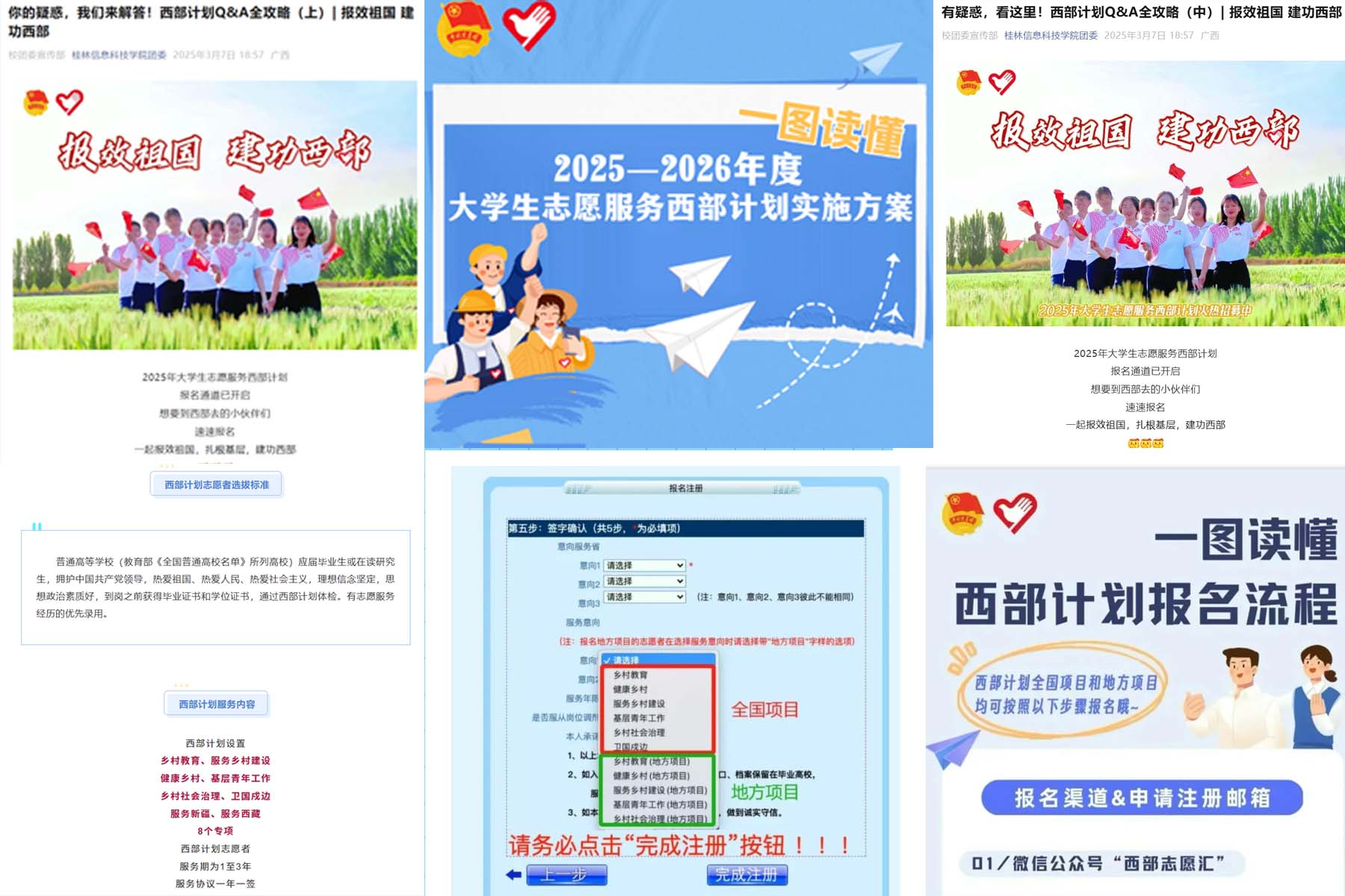 青春叙事,共鸣心灵之弦。校院两级团委借助新媒体平台优势,以专题形式持续推送西部计划内容。开设“西部计划Q&A全攻略”“学长学姐有话说”等14篇专题推送,用图文并茂的形式,生动呈现往届志愿者深入基层的真实故事。这些“青春叙事”如音符,引发同学强烈共鸣,让大家仿佛置身西部,感受风土人情与志愿者的酸甜苦辣。宣传让同学们认识到,西部计划既是锻炼机会,更是责任使命。