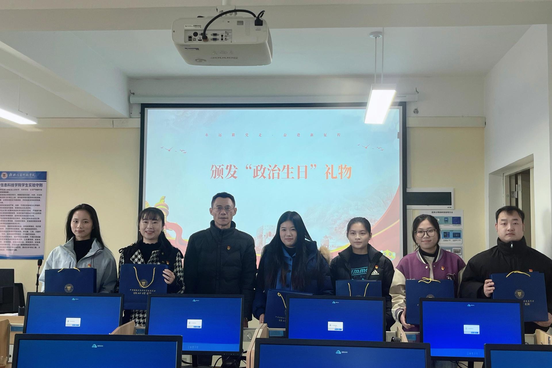 为强化党员身份意识,激励广大党员不忘初心、牢记使命,近日,信息工程学院党委组织所属各党支部集中开展了主题为“政治生日忆初心,砥砺奋进担使命”的党日活动。活动中,各支部精心组织,庄重而温馨地为党员们庆祝“政治生日”。各支部书记向过“政治生日”的党员同志发放了饱含组织关怀与期望的政治生日礼物。这份特殊的礼物不仅传递了党组织的温暖祝福,更是一份沉甸甸的责任提醒,时刻鞭策党员们铭记入党时的铮铮誓言,永...