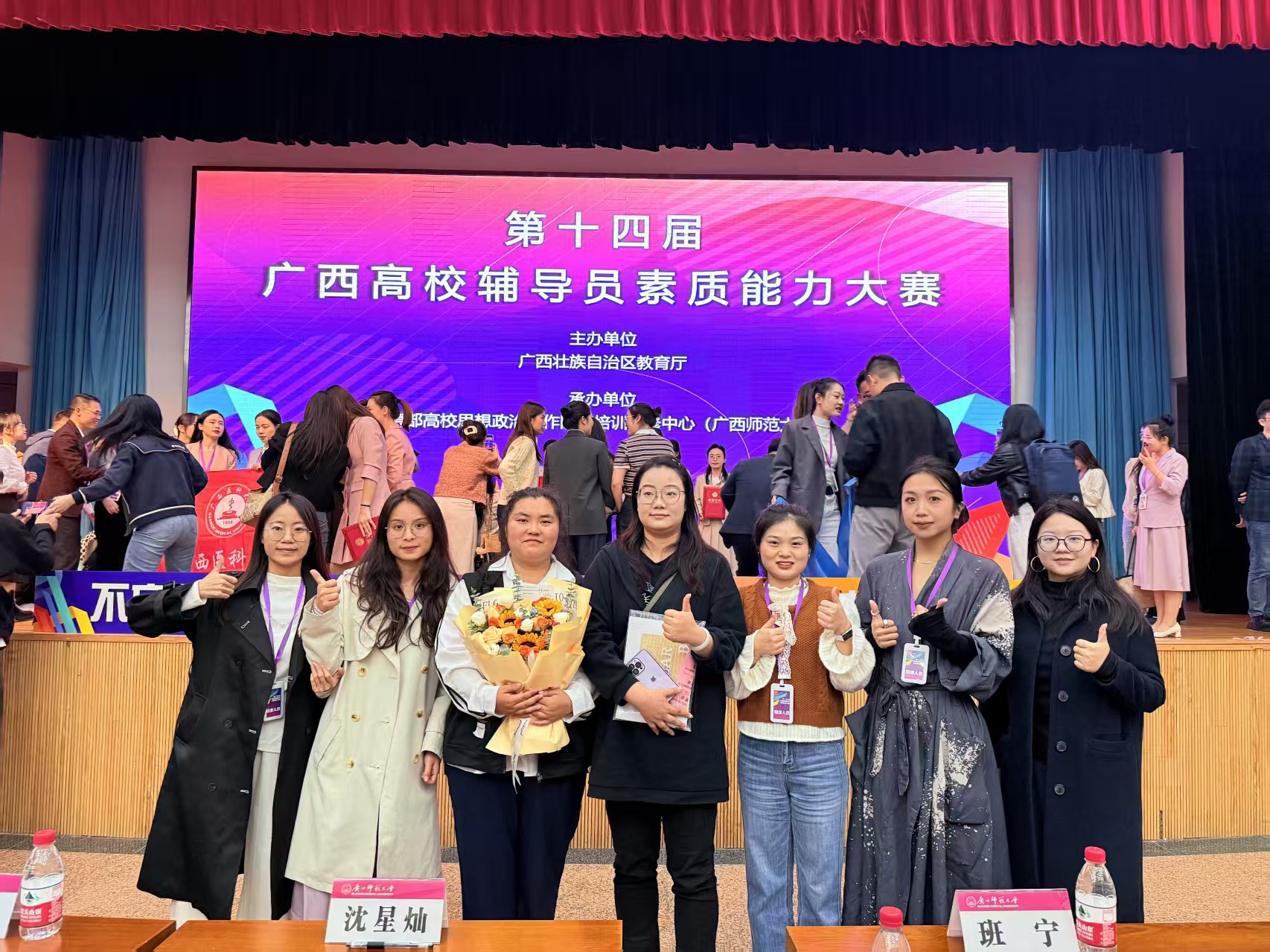 近日,由自治区教育厅主办、教育部高校思想政治工作队伍培训研修中心(广西师范大学)承办的第十四届广西高校辅导员素质能力大赛在广西师范大学顺利举行,来自全区各高校的114名优秀辅导员同台竞技。永利官网选派信息工程学院谷鑫钰、商学院李静怡两位专职辅导员老师参赛。本次大赛分为“赋能成长”和“实战演练”两个单元,涵盖赋能微课、基础知识测试、学情分析、案例研讨、谈心谈话五个环节,对本、专科选手的理论水平、专业素养...