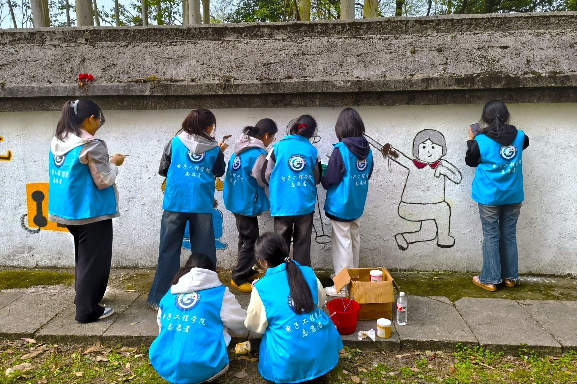 3月23日上午,信科“蓝色青风”志愿服务团队携手桂林市临桂区幸福家园养生养老中心,共同开展"承雷锋之志,绘夕阳之美"主题志愿服务活动。活动期间,40名志愿者分为两个小组有序开展服务。第一小组手持绘画工具,在养老院空白墙面上精心创作主题墙绘。志愿者们巧妙构思画面布局,用画笔在白色墙面上勾勒出一幅幅充满温暖与希望的画面。第二组志愿者开展敬老陪伴服务,通过聆听长者口述人生经历、共话生活趣事等方式建立情感联结...