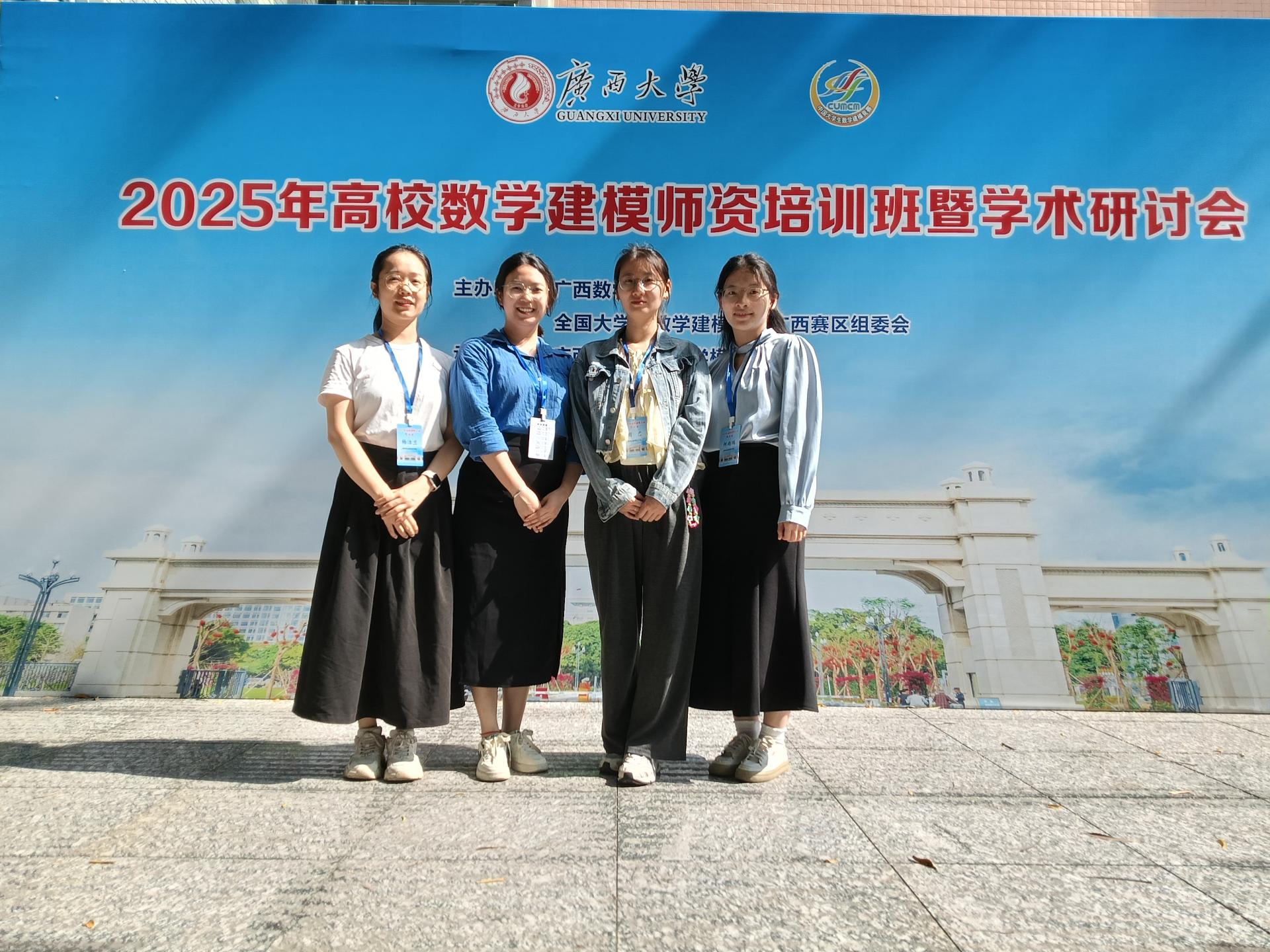 2025年4月17日-20日,2025年高校数学建模师资培训班暨学术研讨会在广西南宁举行,会议由广西数学学会与全国大学生数学建模竞赛广西赛区组委会联合主办,广西数学学会数学模型专委会与广西大学数学与信息科学学院承办。永利官网基础教研部数学建模竞赛负责人舒常江老师与杨洁兰、何雨鸿、周艺老师参加了此次会议。