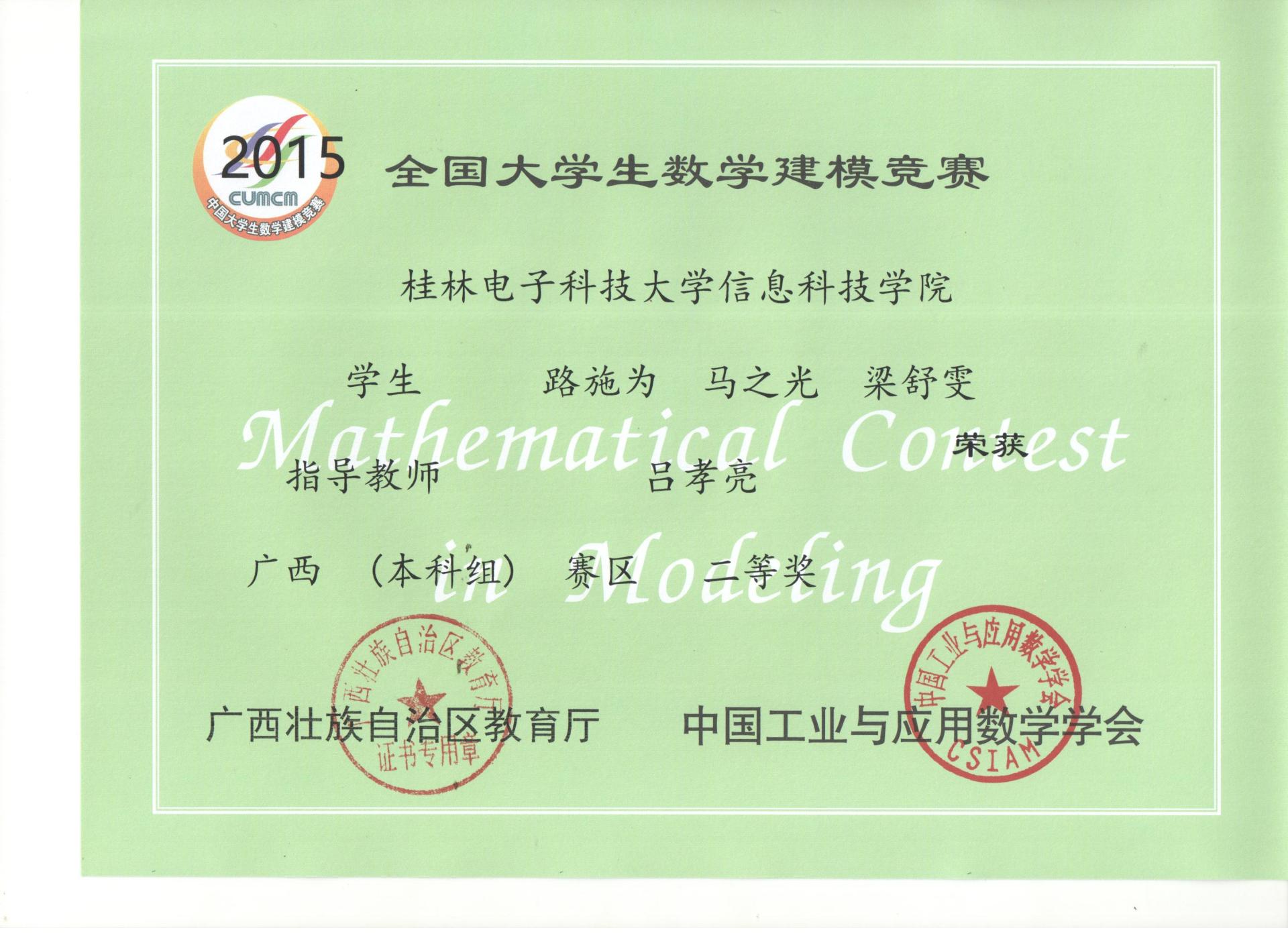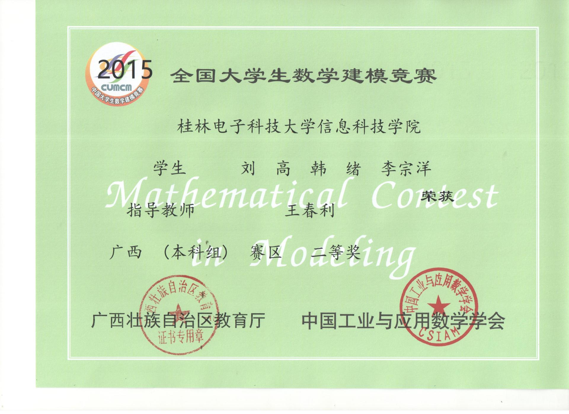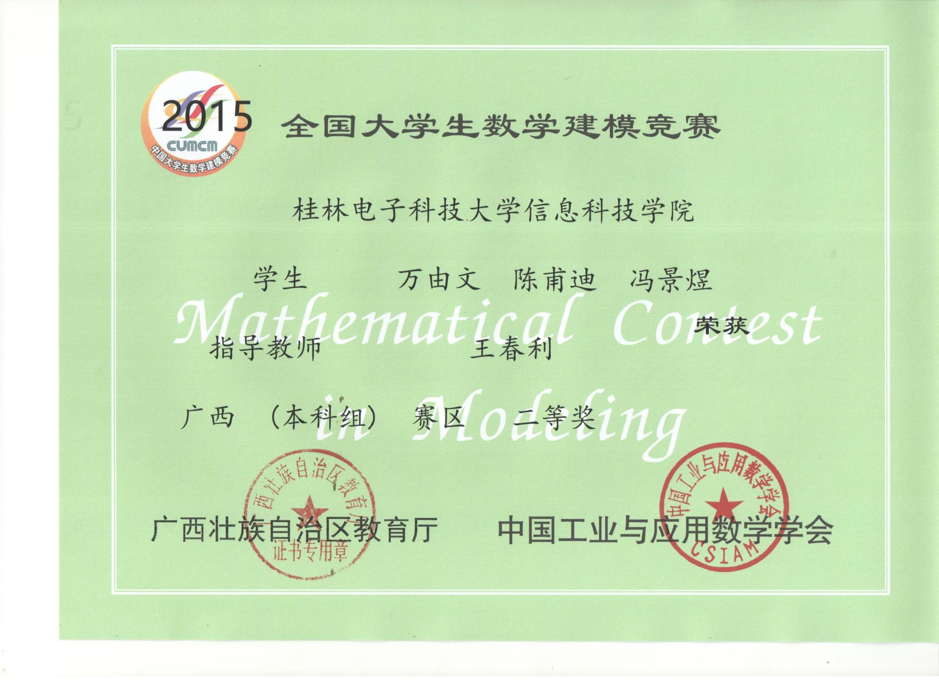 下一条:2014年全国大学生数学建模竞赛获奖