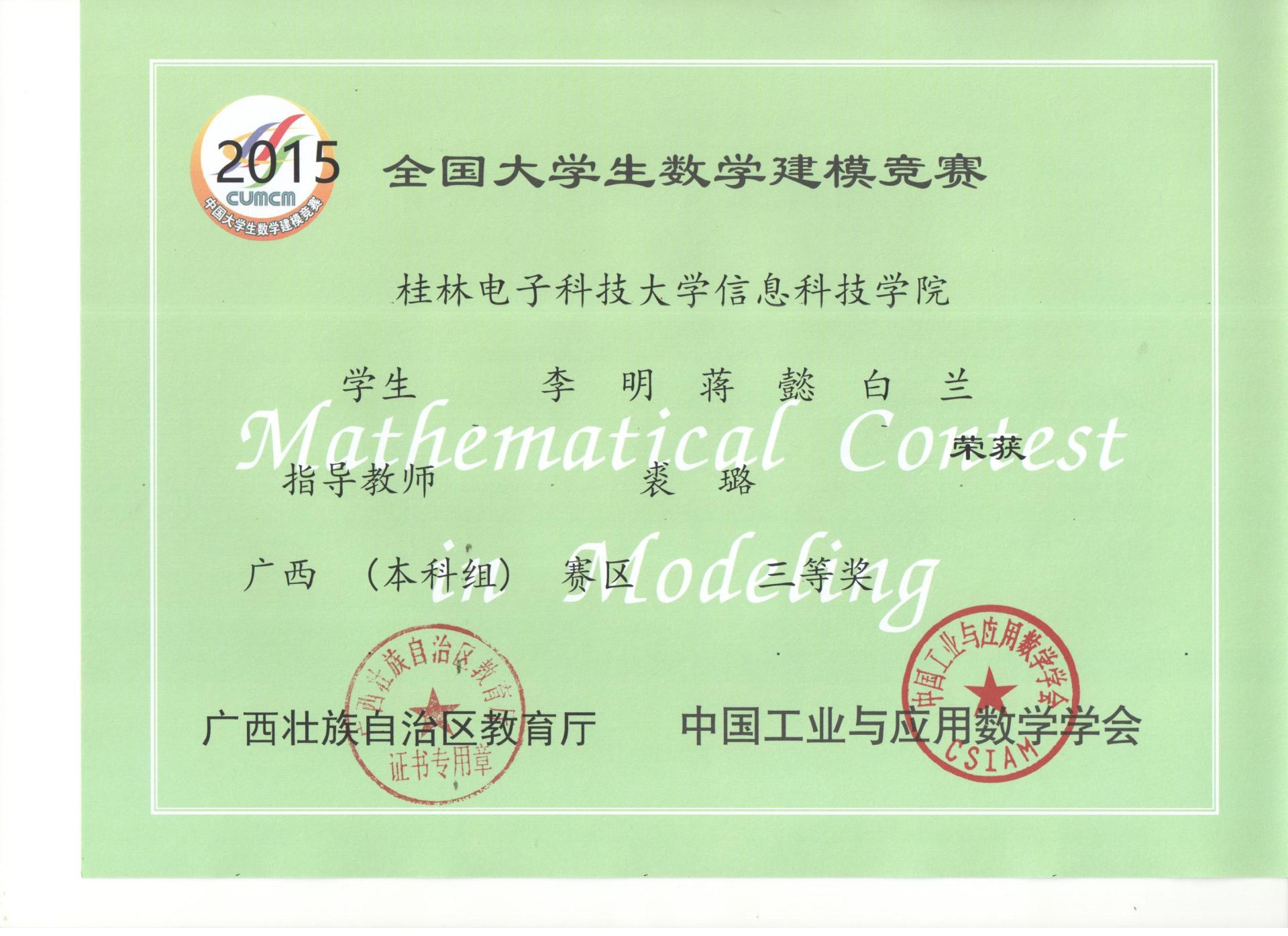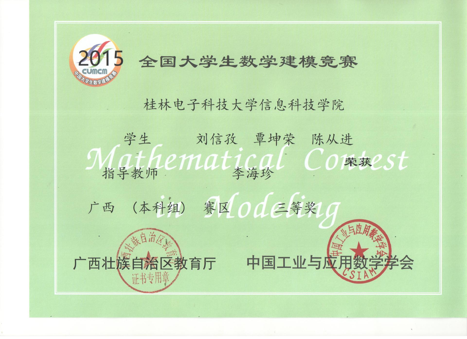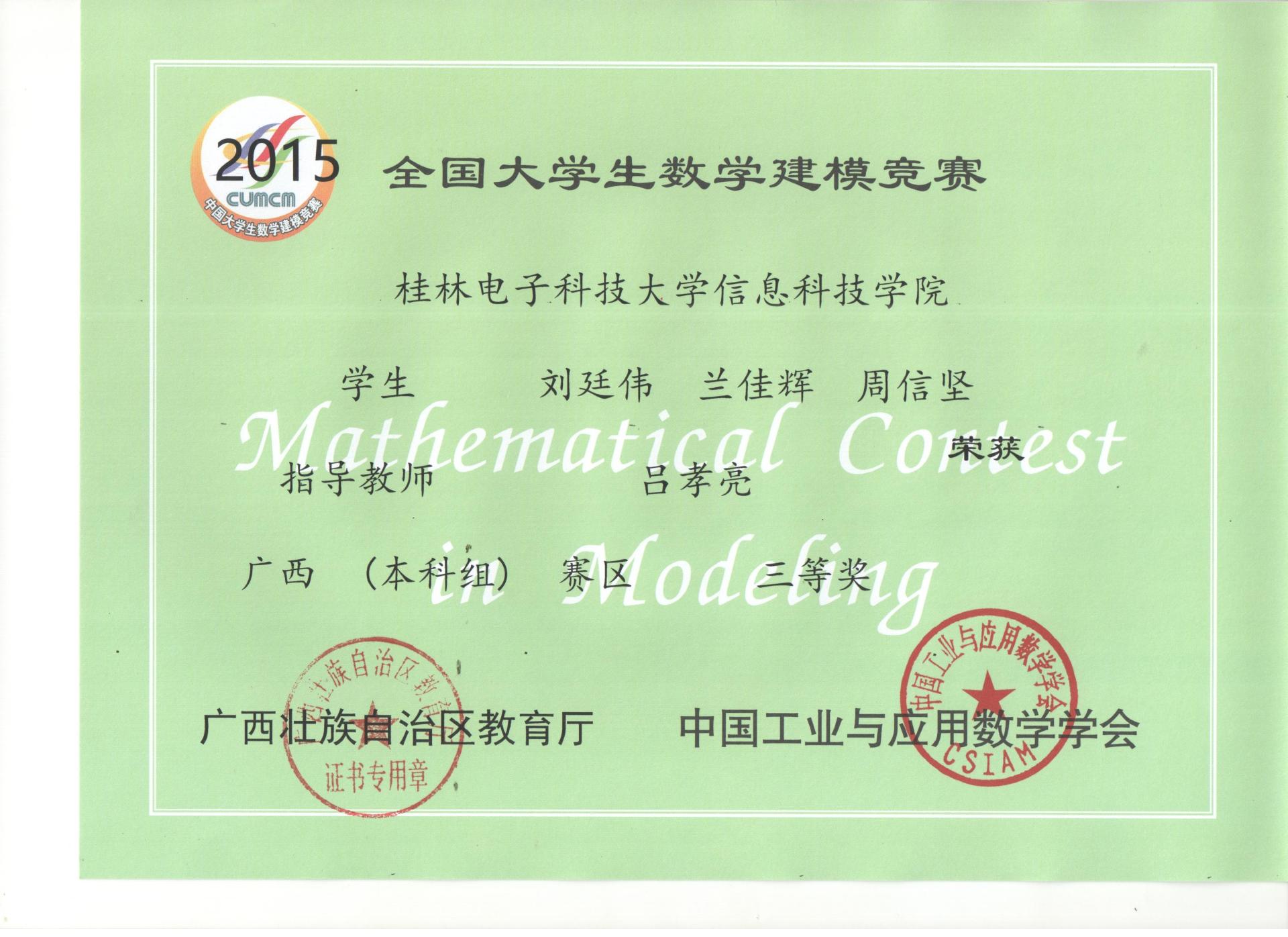 下一条:2014年全国大学生数学建模竞赛获奖